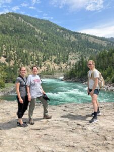 Disappointed, but not discouraged, we moved on to visiting the Kootenai National Forest. We followed a hiking trail to the Kootenai River. Loving these cinnamon-colored tree trunks of the ponderosa pines that smell like vanilla when the sun warms the bark. The cooler temperatures in the 70’s helped with our hike. Especially when the temperatures were in the high 90’s back home in New Jersey.