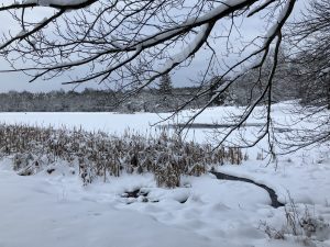 My lake today was vacant. No sound. No movement. No ducks or geese. Too cold for them, I’m sure. It was a white canvas, a blank canvas. Such a canvas in life allows us to paint our own future. Each day. To hope. To dream. To strive for a better life. A peaceful life. Will it be easy? Probably not. But definitely worth the perseverance to continue.