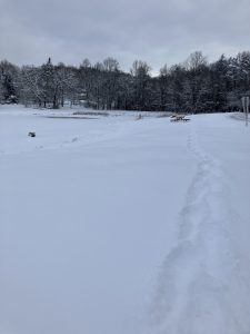 It was a glorious morning for a trek in the snow. Sun sparkling on the fields of ice crystals. The air brisk and clear, chilling my lungs. The wind minimal. I donned my snow pants, hooded ski jacket and gloves and headed down to the lake in my neighborhood.